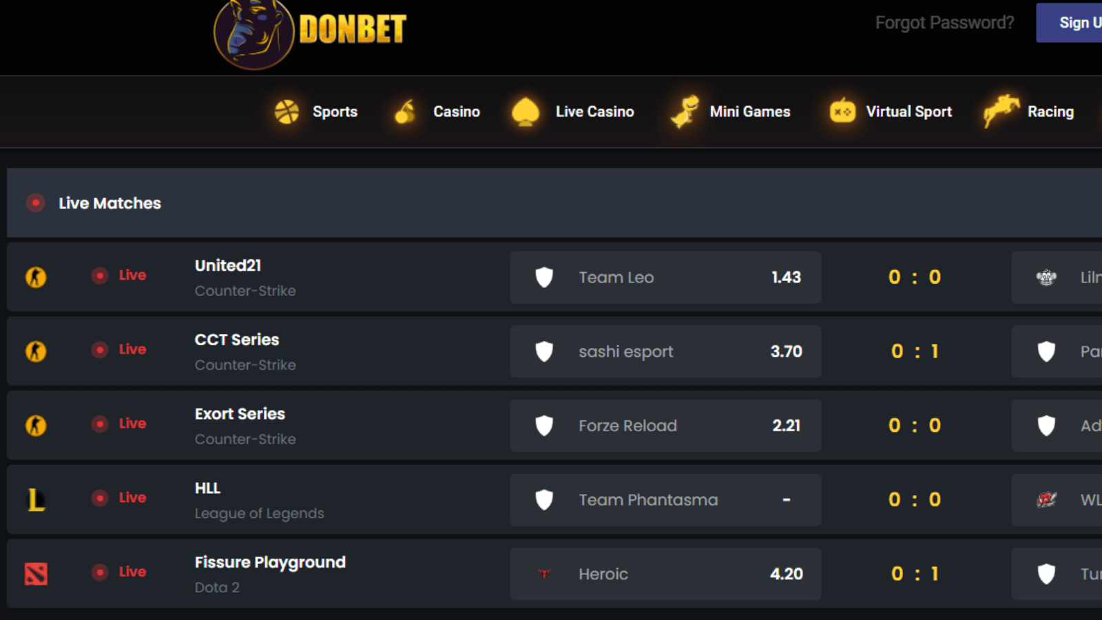 Donbet Sportsbook is an online system that provides a vast array of sporting activities wagering choices, including online betting, pre-match betting, and online sports. It provides an easy to use interface and a safe setting for customers to put bets on their favorite sporting activities occasions.